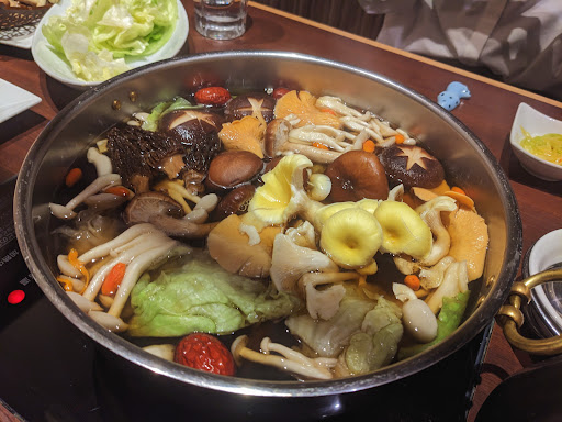 Hot pot courses with all-you-can-eat meat & vegetable options in an unassuming, mellow venue.