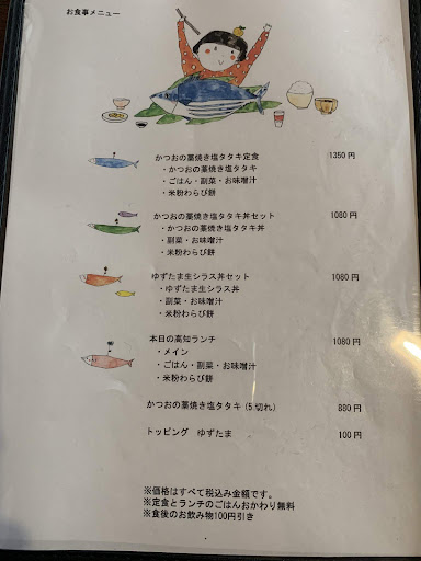 Read moreカツオのランチセットを注文しました。数年前に高知に行った時に食べたカツオを思い出しました。 分厚くて、本当に美味しかったです! 一緒に付いていた、味噌汁が美味しすぎて、家でも真似して作っています。 ただ…平日でしたが、カップルや女子同士のお客さんばかりで1人で来られている方が居ませんでした。 廊下の席に案内して頂いたのですが、人の通りが多くて落ち着かず、ゆっくり食べて店内を楽しみたかったのですが、食べて直ぐにお店を出ました。 1人で行きたいけど、なかなか居づらいかな、、という印象を受けました。 そこだけ残念だったのですが、ランチは美味しく、店員さんも明るくて良い人だったので、星3にしました。 お店の場所は、もしかしたら分かりにくいかもしれませんが、そこもまた良いのではないかと思いました。店内がレトロで可愛いですし、空間はすごく好きです。1人で来られる方にもう少し寛げる空間があればいいなと思いました。