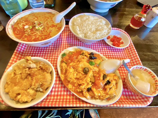 Read more週末の夜におじゃましました。 店内は街中華のお店という雰囲気。 夕食には少し遅めの時間でしたが、賑わっていました。 メニューを見ると、定食がとてもお値打ちでしたが、今回は主人と二人で単品をいつくか注文してシェアして食べました。 青菜炒め、エビチリ、水餃子、豚肉とキクラゲ炒め、ライス小2個、瓶ビールを注文しました。 青菜炒めは、速攻で出てきました。 シャキシャキしていてちょうどよい味付け。他のメニューもどれもみな美味しかったです。 そして、どれもお値段の割にボリュームがありますね。普通の中華料理店のつもりで注文すると多すぎるかも。 今回これくらいにしておいてよかった。 ライスは小サイズでもお茶碗にいっぱいでした。隣のテーブルの男子大学生らしき子はご飯(大)サイズだったのか、大きな丼ぶりみたいな茶碗に山盛りでした。 ガッツリ食べたい方には嬉しいですね。 ビールも安かったです。 夫婦二人でお腹いっぱい食べて、料金は4000円いかなかったのがビックリです。 おしゃれな中華料理店とは違いますが、このクオリティと量と料金設定には大満足でした。 次回はまた違うメニューを...