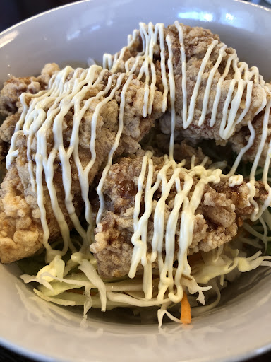 Read moreランチメニューのラーメンとご飯もののセットを頼みました。 汁なしラーメンは結構辛め🌶 まぜそばというより麺も細めでは汁なし台湾ラーメンという感じ 自分自身も辛いのは苦手じゃないけど吸ってしまうとむせるし鼻水は出るしで苦手の人はまず無理だと思います。 メニューに辛いことを書いてないと危険ですね!(・・;) 唐揚げ丼は下にレタス、キャベツにんじんの千切りがありサラダ風という感じでした 唐揚げは醤油ベースの甘み?のある唐揚げでジューシーでしたが汁なしラーメンが結構辛くて少し味が曖昧になってしまっていました。 二つとも美味しかったし¥750円でこのボリュームならお得だと思います! お腹の容量が足りず餃子が頼めなかったので店名にも手作り餃子と言っているので食...