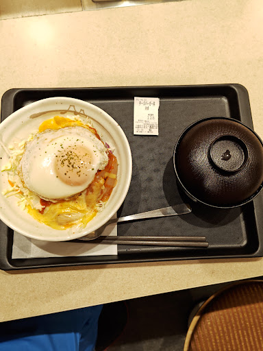 藤が丘駅ビルに用事があったので、駅前の松屋さんの朝食メニューにて、少し早いランチにした🍴 駅前なので、無料の駐車場無し。 駅ビルや周辺にコインパーキング多数あり。平均60分200円というところだろうか!? 今回、かみさんと私は、公共交通機関にて立ち寄ったので、地下鉄東山線出入口の隣(北側)という立地が最高だ(笑)