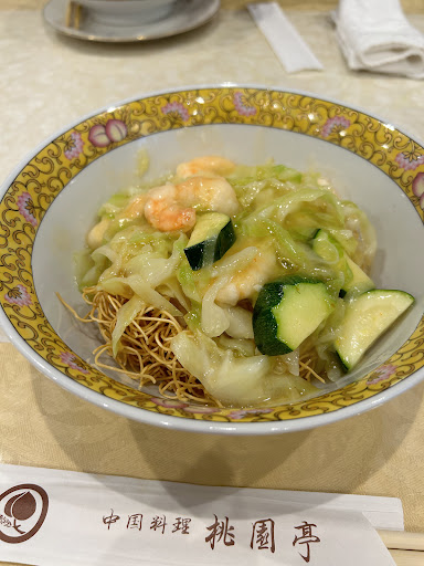 私は麺のランチセット(約¥1700)にしましたが、海老とズッキーニとキャベツのバリそばと、唐揚げ2個、せいろ蒸しされた焼売2個、サラダ2種類、杏仁豆腐、白飯も付いてたけどさすがに食べれないと思い、手をつける前に返品しました。 バリそばは見た目はあっさりしてそうだけど、食べてみるとこちもしっかりしたお味でとっても美味しかった。 唐揚げはカリカリだけど、ちょっと私好みの味ではなかった。
