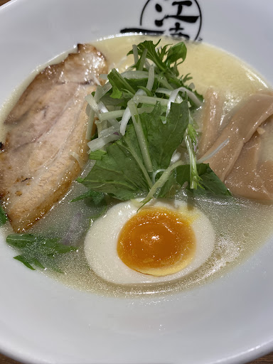 Read moreスープは薄くて良く言うと上品な感じ。 名古屋という土地柄、もっと醤油をきかせたほうが良いと思う。 麺は極細。めちゃくちゃ細い。 細すぎてすする感じが無い。 箸のひとすくいでごっそり口に入ってきて細いもんだから口の中でもそもそダマになる。 麺の塊を噛んで食べる感じ。 例えるならふやけた棒ラーメンを食べている感じ。 ぼやけたスープともそもそ噛まないと食べられない麺。 どっちかと言うとスープよりも麺が気になった。 なんであんなソーメンというかにゅうめんというか、すすれない、かみごたえの無い麺を使っているのか?