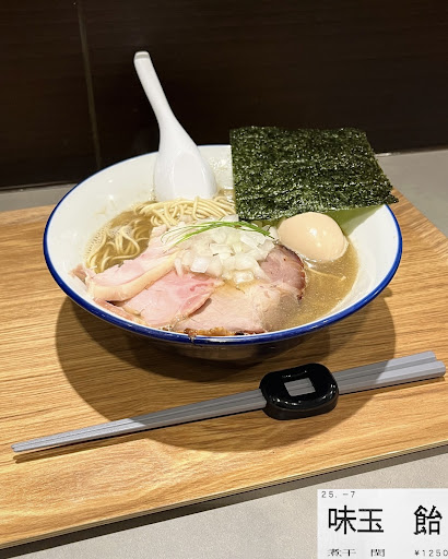 Read more新店のため 便宜上評価オール星3つとさせてください 固定回転イスカウンター9席 ベンチシート4〜6人卓×2 2025年7月初利用 パイロット版ソープランド… 基 「スープランド糸」以来1年強ぶり 名古屋市東部で貴重なニボ特化店爆誕? 私が他を知らないだけかもしれません 直近3〜4度利用試みましたが 駐車場満車で待つ元気が湧かず毎回退散 ようやくようやく伺えました 遅い時刻のためフラグシップ「飴」のみ販売 味玉飴1250円+和え玉250円 スープづくりに投資入魂しているだろうし スープストック大量生産も難しいのだろう 直径6寸位で浅い切立丼にて配膳 糸ではグラフミ食器だったから量は普通に感じた 大切に味わわんとダメやなと食事開始 麺量も丼形状に合わせた少なめ加減 しかし 強靭麺サルベージすれば強靭スープ拮抗 スープをよくひっぱり上げる◎ けれども いちびって手繰ると スープの減りも早い気がする また 煮干由来なのか別途添加なのかわからないが 乳化?油脂分が多少多いと思えた …と思い調べたのが煮干の栄養成分 脂質は大したことない 煮干と水のスープということで 勘違いだった!アッホーやった! 「鈍」でなくても単純に煮干がリッチということ それでも食べ疲れは皆無で 絶対量以外は 重量感一体感立体感充分 糸でいただいた冷やし飴と変わらぬ印象のよさ 今回は 糸でのいわゆる「シロ(=微塵玉葱)」を 追加しなかったが 標準量でよいアクセント 3種類仕上のチャーシューは部位臭切置臭皆無 やば! 気づけば和えコール前にプースー減ってもたがな それでも 麺だけで食べ甲斐あるし 和えてもプースーに解放しても 好きに食べて充分マンのゾクやな 卓上の白醤油とお酢は レンゲにとって単独で味見しましたが 和え玉ほぐしにちょっと使うくらいかな〜の 感想を持ちました ごちそうさまで...
