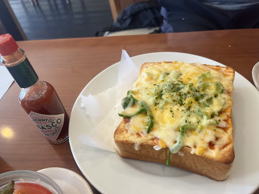 ドリンクはコーヒーが500円なので、値段の割に味は平凡かなと少し残念でしたが、セットのサンドイッチのパンはもちもちしてかなり美味しい部類だと思います。 からしマヨネーズで、結構辛めでした。 ピザトーストも野菜がシャキッとしてて美味しかったです。 店長さんのワンオペなのかとても大変そうでした。 できれば椅子がもう少し座りやすい...