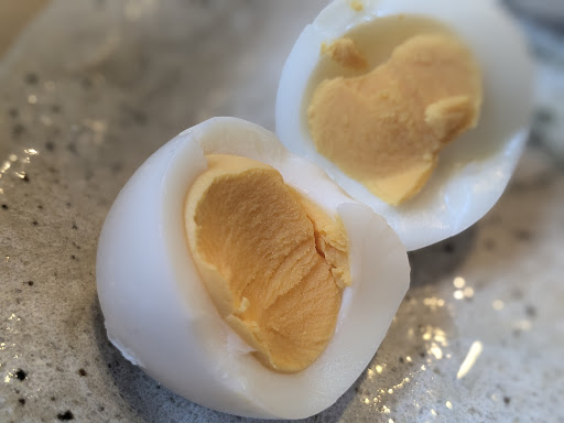 ゆで卵の固さはモーニング好きにとって物議を醸し出す項目ですよね。ここのは固ゆででした。ホクホク系です。