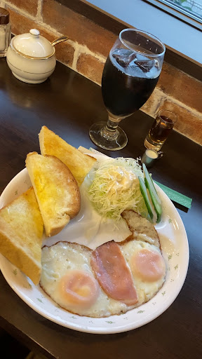 おいしい珈琲と朝からオーダーできるたくさんのセット☕️🍞🍳🥓🥗 ‘23/10月 ◆Aセット¥780 比韻豆さん(ビーンズさん)には移転前から数回訪れていますが、モーニングのメニューは1種類だと思っていました😅メニューに(A〜Cの)セットと書かれていたのでオーダーしてみるとワンプレートのセットが🍽️✨ トースト🍞は、山パンを3カットした1枚分(食べてみるとボリュームあり😆)ハムエッグ🥓🍳サラダ🥗そしてドリンクがワンセット ハムエッグの目玉焼きには塩がかけてあり久々の塩で食べる目玉焼きはおいしかったです🍳😋