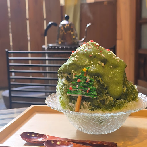 月替わり期間限定かき氷 今月は クリスマスバージョン🧑🎄 特選ダブル抹茶クリーム 1400円 ほろ苦い抹茶クリームと抹茶シロップの中には、可愛く白玉とあずきが入っています。 クリームの甘味も丁度良かったです。 抹茶の美味しさを上手く引出していて抹茶好きの方にも喜ばれそう。