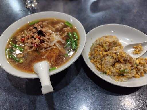 麺飯ランチから 中華飯 台湾ラーメン 台湾ラーメンは見た目はチョットあれ?っと思ったけど‥‥ スープは旨味もあり、辛味もあって美味しい そぼろも粗めで歯ごたえもあり、量も結構あります、おおみけに切った唐辛子はちよ歯に当たるのが気になる? 麺は細麺でスルスルと入っていく 台湾ラーメンでは美味しい方だと思います 中華飯は写真を見て美味しそうだったので注文 タップリの餡、餡が少しユルイがそれ位が食べやすく、コチラもスルスルと食べ進むが、ボリュームが少し足りないと思った 麺も飯もどちらも普通に美味しい 値段も安いが、+幾らかで大盛りが出来たら良いのにと思います メニューには記載が無いが、最後にコーヒーが貰えたのは嬉しい