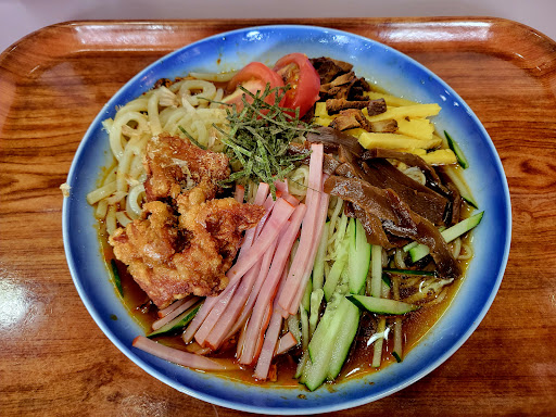 豆板醤が入っていて、酸味もあり、甘辛の冷やし中華そばでした。 うどんの麺のもちもちな感じが、案外冷やし中華に合う気がしました。