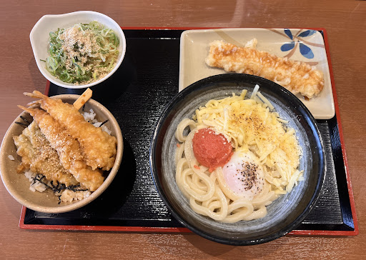 Read more店に入った時、注文の所には私1人しかおらず、手前の明太チーズ釜玉を作るのに10分かかるとのこと、ミニ海老天丼と一緒に食べたくて注文するも、本当に10分ほどかかって見たら……これを作るのに10分かかるのか?って言うレベル...