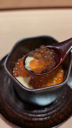 今回の内容はこちら ↓↓↓ ★北海道利尻島の塩水ウニと能登の絹 もずく ★本マグロネギマ串 わさびと大根おろしで ★新いくら茶碗蒸し✨