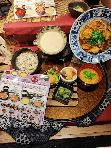Read more昨日月2回の仕事のお休みに午前中、鯛めしちどり・ワンダーシティ店にお邪魔しました🙋 自分は黒・松花堂膳(2233円)とりんごジュース(418円)を母は黒・とろろみやび膳(2013円)を注文しました。 母は煮物が美味しいと言い僕は自然薯が美味しいはずだったんですけど母がドバドバとかけて醤油っぽい味になったのが残念です🫠 それでも料理の見た目、味はかなり美味しく頂いたので満足しました✨ このお店は自分が来た時間でも家族連れやカップルなど沢山いたのでそんな中でも楽しめちゃいます😃 4664円と結構美味しく頂きました😁