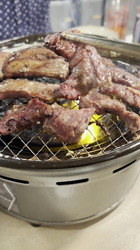 Unique meats in a modest eatery with tabletop grills & taps dispensing all-you-can-drink beverages.
