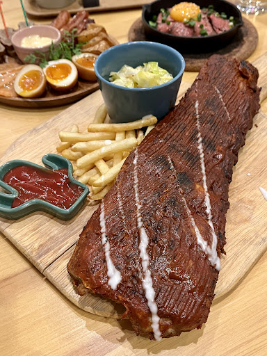 料理の方はBBQて名乗ってるだけあり 豪快な肉料理や美味しそうな燻製系メニューが多数。 友人達と行ったけどファミリーでもカップルでも楽しめる雰囲気。