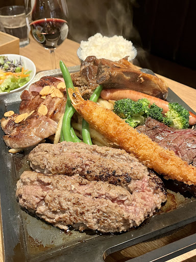 ★大鉄板1ポンドお肉盛り合わせ (ハンバーグ、栗豚トンテキ、牛サガリステーキ、スペアリブ)