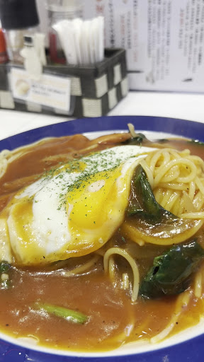 This is in reality a small spaghetti bar, serving this singular type of pasta using different sauces. The taste is definitely Japanese in a nice way, using the right amount and descent quality cheese. The taste could be quite impressive had it not been overly salty. The garlic bread is one of the best we have had in Nagoya, which is a pleasant surprise.
