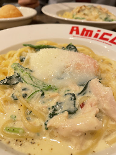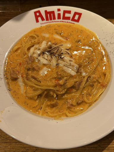 KIWAMI. AMICO Pasta: A bold and decadent fusion of Bolognese and Carbonara sauces, this dish embodied indulgence in the best way. The richness of the cream and cheese from the carbonara blended seamlessly with the deep, meaty umami of the Bolognese. Itâs hearty without being too heavy, with a comforting balance of savory and creamy flavors. Topped with grilled onions for a sweet and smoky finish, every bite felt like a carefully crafted experience. âKiwamiâ means âultimateâ, and this pasta truly earns the title.