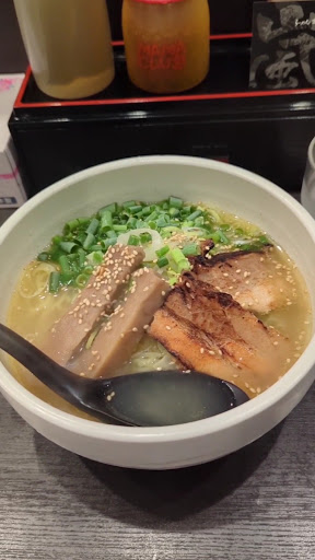 The slightly cloudy soup had a very refined and gentle taste, which paired well with the smooth, thin noodles. The toppings included seared chashu (pork), thick menma (bamboo shoots), green onions, and white sesame seeds. The tender chashu and well-seasoned menma were both delicious.