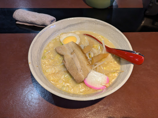 豚骨ラーメンは、少しスープがぬるい感じ。上に乗っているもやしのせいか、スープの味も薄まってしまっている感じ。味は美味いだけに、ちょっと残念。 一方、にんにくチャーハンはガツンと味も濃く、美味かった。ボリュームもしっかりありました。 基本的に料理の味は美味いと思います。 ホールの方の接客も気持ち良かったです。 駐車場がなく、近くのコインパーキングを利用するしかないのが、ちょっと残念。