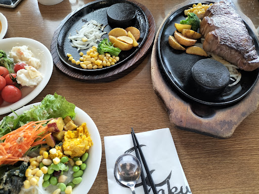 Read more肉の日のメニューで2人でシェアして食べるサーロインステーキ450gで6160円をオーダー。 混んでいるから提供に時間がかかりますと店員さんのお言葉があり、少しのんびりとサラダバーを取ってきたらあっと言う間に焼き上がって来ました。 あさくまさんはいつも提供が早いのですが、時間がかかると言われても10分そこそこの時間で出てきたのでキッチンの効率が良いのかな。。 肉は厚切りでさすがの食べ応え。 端っこの脂身はムニュッとしていて要らないけれど、厚切りサーロインはそういうお肉なのでまぁ良しとします。嫌いなら残せば良いわけですし。 あさくまの店舗はどこも席にゆとりがあって、ゆったりした気持ちになれます。 サラダバーにデザートもついてて、ついつい食べ過ぎ気味になってしまいます。 ひょっとしたら勘違いかもしれませんが、八熊店は何年か前に使ったときより少しリフォームされたような、居心地が改善された気がします。