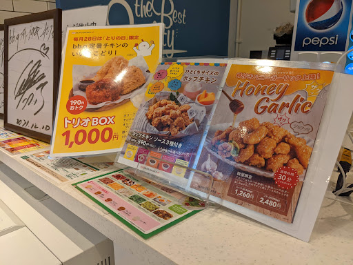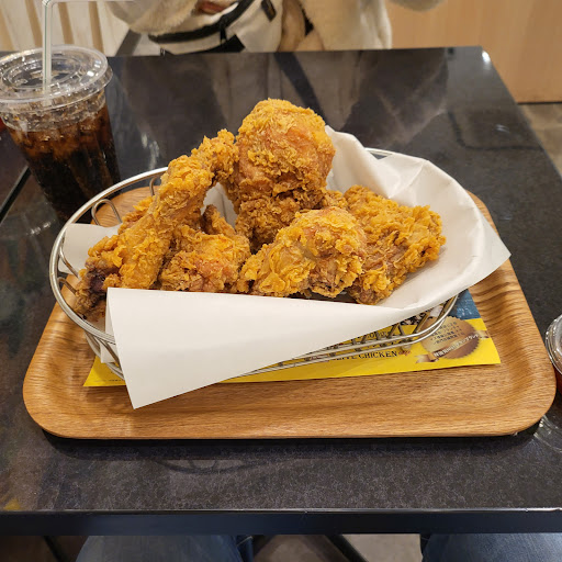 Read more韓国のドラマ「愛の不時着」で一躍話題となったチキンがついに愛知県にあるとのことで、岐阜から家族で向かいました! 岐阜から高速で50分程で到着! ヒルズウォークの一階にありました! オープンから約1ヶ月ほどでしたが、お昼時で、めちゃくちゃ行列のお店があり、ココだとすぐに分かりました。 店内は女性のお客様が多く、行列なので待ち時間は覚悟しておりましたが、テイクアウトの方が多いようで、席は確保できました! 流石にソファ席は空いてませんでしたが、オープンテーブルが空いたので、そこに3人座りました。