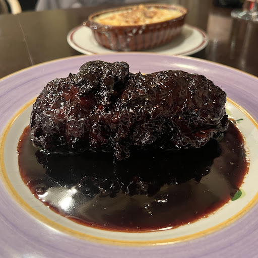 There is a regular menu and a seasonal one. In this one, you can find item such as duck in pâté en croûte, fish in puff pastry, pig foot, fig, etc. In the regular one, classic French cuisine like charcuterie or cassoulet.
