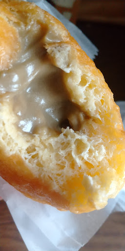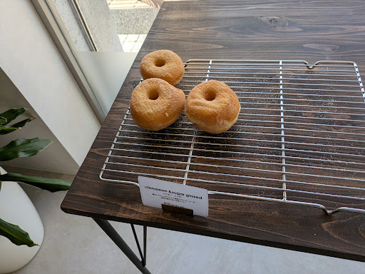 Read more新しいドーナツ屋さん 名古屋初とのことで行ってみました。 一日で作れる量が限られているようで、夕方だったので買えないかもと思いダメ元で入店。 まだわりと残っていました。 しかし店内の作りがお粗末すぎて、簡易の店舗か?と思う店構え。 広い空間にこだわりのない長テーブルが並んでるだけで、見栄えからわくわくさせるような工夫はありません。 ドーナツが置いてある銀色の網にはラップが貼られており、ドーナツをトングで取ろうとすると、ラップも一緒にくっついてきます。 おそらくトッピング落下防止なんだと思いますが、なんだか見栄えも悪いし、家庭感が溢れててなんだかなぁと思いました。 肝心のお味はフワフワで美味しかったです。 が、1個400円近いドーナツなのでもう少し他の部分も頑張った...