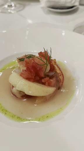 新玉ねぎのムース まずは旬の新玉ねぎを使ったこちら! パット見真っ白な食材で構成されていますが フレッシュトマトをプーマにするなどの 工夫が施されています! ネットリした口当たりのムースは 新玉ねぎの爽やかな甘さと トマトの酸味! しっかりと食材の味わいが感じられる 一品でした!