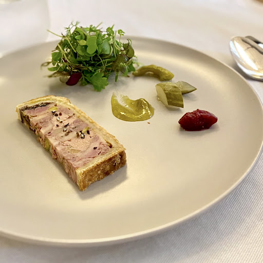 ★パテクルート ピクルス、黒イチジクのコンポート、青梅のピューレ 前日に出来上がったので、パイのサクサク感を楽しめる極上品。 フォアグラがかなり効いていてリッチ感満載。 これはめちゃ美味しい。