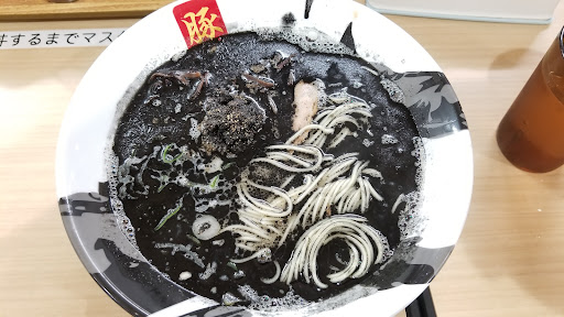 Read moreちょっと大須方面に用事で行ったお昼に訪問 無性に豚骨ラーメンが食べたくなり、Googleマップで検索したところ豚神さんを発見しました。 訪問時刻は11:50頃で、待ちの人もおらず、すぐに入れました。 お店に入ってすぐに、券売機があります。 悩んだ挙げ句、スタンダードにはせず、黒神という、焦がしニンニク&イカスミ入りで、黒いスープのラーメンを注文 オーダー時に、麺のかたさ、濃さも決められるのでお好みの感じにカスタマイズすることができます。 今回は初だったので、麺のかたさは、バリカタで、注文してみました。 暫くして黒神着弾し、スープを一口。 濃そうだけど、濃くない豚骨の臭みとかも無い感じのスープでした。ただ、普段よく行くラーメン屋さんのハリガネよりも硬い感じで、且つ茹でた水分の含みが多い為か少し薄い感じ… 残念ポイントではありましたがツルツルっと、硬い麺をすすりつつ1杯目完食。 お腹と相談して替え玉を! 今度は普通の固さでオーダーすぐにでできました。こちらも、湯切りが弱い感じの麺が出てきました…今日はそう言う気分だったのかな?と思いつつ、替え玉のタレとかはかかってないので、少しゴマと、醤油をたらしてからスープの中に投入~引き続きツルツルっと食べ進め、2杯目も完食。店舗内で待ちのお客さんも出てきたので、今日はこの辺で~と、お店を後にしました。 スープは、癖の無い感じだったのと、替え玉までしたので、★4つですが、湯切りの弱さなのか、スープが少し薄まってしまった部分は残念なポイントなので、マイナスポイント… けど、美味しくいただいたので★3.6位の気分です。故に★4...