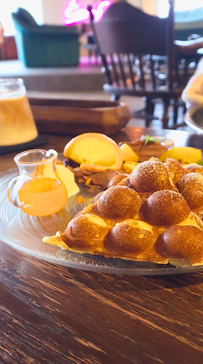 On this visit, I ordered an iced cafe latte and an orange chocolate paffle. The iced cafe latte is a decent drink; not amazing but refreshing and reliable. The orange chocolate paffle was incredible. The presentation was fun, and the taste was decadent.