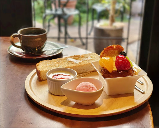 【モーニング】9:00~11:00 ・好きなドリンクを注文すると ライ麦トースト(ハーフ)+タマゴサラダ+ヨーグルト付きます。 +300円でグレードアップ ・ ケーキ屋さんの生クリームトーストセット (ドリンク代+300円) ・とろけるチーズトーストセット(ドリンク代+300円) ・選べるケーキモーニング(ドリンク代+300円) (480円以下のケーキをショーケースより選びます) ~~~~~~~~~~~~~~~~~~~~~~~~ 街の中のケーキ屋さんカフェ、小じんまりしてましたが 暖炉がありオシャレな雰囲気の店内です。