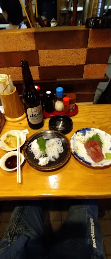 何よりも瓶ビール大びん490円😱 安い❗中びんでもこの値段は見かけません💦 イカの丸焼き、焼き茄子も旨い😉 焼き鳥も3本で330円ですよ 刺盛りも安くてアジフライが美味しすぎて刺身も頼みました 生け簀からアジを出すので新鮮です⤴️ お寿司も美味しそうでしたが 涙巻きが好きなので注文❗ 辛い❗旨い❗の連続🎵 焼き鳥や玉子焼き等 大満足で...