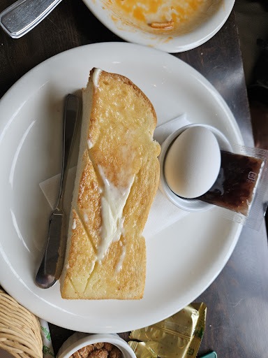 Read more名古屋の喫茶有名店でモーニング🍞 ◆アイスカフェオレ¥460 ◆(モーニング)フルセット+¥100 【モーニングフルセット】は •バタートースト🍞 •サラダ🥗 •ゆで卵🥚 •ジャム🍓 がワンプレート🍽 🍞4~5㎝はあろうか厚切りトーストがふわっとしてバターの風味がよくおいしかった✨ジャムをのっけて最後までいただきました🍓 🥗サラダはトマト🍅キャベツ&サニーレタス🥬さっぱりとしたホワイトドレッシングがイイ👍