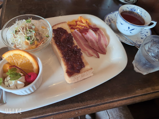 日曜朝にどうしてもモーニングが食べたくなり時間ギリギリで入店。幸い店内は比較的空いていました。以前にも何度か利用していたのですがこのお店は雰囲気がすごく好みです。照明や調度品、席の間取りなんかも落ち着くお洒落さがあります。(壁の黄ばみだったりタバコの匂いだったりもありますが、寧ろ味です。綺麗な方がいい!という方はちょっと気になるかも) 前置きが長いですが、お腹が空いていたので通常のモーニングではなく750円のモーニングプレートを注文。先に紅茶が届き、ほんの少し遅れてプレートが届きました。 紅茶がちゃんといい香りで紅茶好きの私的には既に大感謝。渋みも無くスッキリ飲めます。 肝心のプレートですが、好きなモーニングのパン+サラダ+スクランブルエッグとベーコン+フルーツポンチ(?)でした。スクランブルエッグ美味しい。とろとろです。小倉トーストも軽めの厚切りパンにバターの味がちゃんと乗っていて、でも重さやくどさは無いので胃の小さい人間でもするする食べれました。 フルーツポンチは缶のフルーツのかな?と思っていましたがそれ以外にも入ってました。ぶどうとか梨(多分)とか。生クリーム乗せても美味しんですねフルーツポンチって…… これで750円ですぐに出てきたのは本当に有り難かったです。店員さんの対応もさらっとしていて居心地がいいです。朝ちゃんと起...
