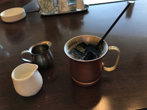 Read more猛暑の午後、涼しさを求めて入ってみた。午後4時少し前という夕食にはまだ早い時間なのに、お食事の客が何組もいる。なるほど~使い勝手が良いのですね。 喫煙可能店らしいけど、たまたまなのか、吸ってる人はいなかった。 こちらはアイスコーヒーだけをいただく。大通りに大きなガラスが面してはいるが、ロールスクリーン?のおかげで割と静かで視界も遮ってある。 雑誌も豊富。じっくり時間調整出来た。店内にクラフトビールのポスターが貼ってあるし、「金曜日は生ビールハイボールサービスデー 300円」なんてポスターも。 日替わりランチも充実してそうだし、今度は昼呑みに来てみようかな。 アイスコーヒーは豆菓子の小袋が付いて...