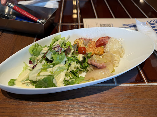 Read more2024.12/20…小牧の自宅から実家への帰途。 今年は、「ハーブス」の(此の時季限定の)ホワイトチョコ扁桃(アーモンド)ケーキを、まだ食べていない。 東新町付近のコインパから歩いてくものの、どのハーブス店舗にせよ、来店時点では 11:00を大きく回りそうで、満席のリスク大?。 平日とは云へ 残念ながら断念、セカンドセレクトの「ラ・メゾン」(中日ビル)へ向かふ。 すると(私自身は)初めて目の当たりにする、入口前に行列が発生していない此の店(平日の11:15前後なら 当たり前?)。 好きなスペイン料理 故、ニューVer.中日ビルへの初来以来、多少なりとも 気になっていたが、長い行列がネックだった。 折角の 千載一遇のチャンス 故、ラ・メゾンへの思ひは雲散霧消、初となる此の店へ。 今迄、彼方此方のスペイン料理店を訪れた経験では、10軒中9軒では、" お一人様客 " はパエリアに ありつけない。 メニューブックをチェックすると、大抵 2人以上でオーダー可となっており・・(所謂 " プロヴァンス料理? " に於けるブイヤベースも同様)。 どのパエリアもOK と 聞き、欣喜雀躍。 本来は 大好きな牡蠣だが、プリン体の多さ 故、普段は 極力 スルーするが・・。 更に 生牡蠣は(此の店の売りらしいが)、昔 モロに当たって、一週間前後 苦しみ抜いたので、本日も 控えるのみ。 其の代わり、加熱した料理に使用しており、しかも 芽キャベツ等も盛り合わせられた一品に。 昔から 計 数十軒訪れたスペイン料理店に、或る時を境に 行かなくなったのは、( " お一人様客 " では、なかなか パエリアにありつけないのも理由だが)基本的には、デザートが クレーマカタラーナ位しか無い事が 大きい。 しかし 此処では、ショコラータ(生チョコ)等も有り、ポイントが高い。 珈琲を啜りながら、前日 訪れた店のレビューを綴りながら、スウィーツタイムを楽しむ。