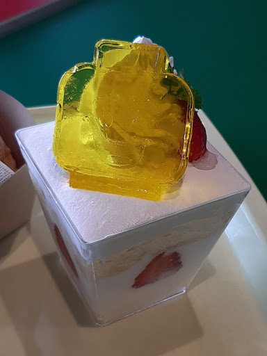 「カップストロベリーショートケーキ」650円 「美味しそう」との声で選択。 上のレゴランド独特な飾りは硬めのゼリーでできています。 お味もなかなかに悪くないです。