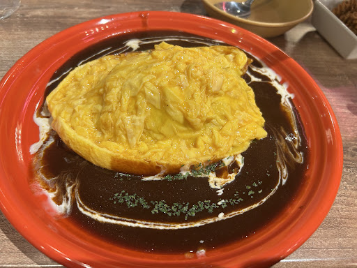 最近できたそうでオムライスやシカゴピザがメインの夜カフェ☕️ 大学生やOLなど若い世代に人気あるそうで、娘と共に伺いました😊 注文はモバイルオーダー制📱 メニューは映える品が多いので女子ウケしますね🤗 私は 『デミグラスソースのオムライス~チーズハンバーグのせ~』1980円 『チーズ屋さんの穴あきチーズケーキ』680円 『ブルークリームソーダ』550円 娘は 『トリュフチーズソースのオムライス』1580円 『チーズ屋さんの穴あきチーズケーキ』680円 『ストロベリークリームソーダ』550円 オムレツパッカ~ンはプロのスタッフさんがやってくれるので、めっちゃ綺麗にできますよ✨ オムライスとハンバークの組み合わせは流行りですね~☺️ ただのハンバーグじゃなくてチーズinなのが嬉しい😆🙌 玉子もフワフワで美味しいです😋👍 娘のトリュフチーズソースのオムライスもひと口頂きました✨ めちゃめちゃトリュフの香りがします❣️🍄 食べ終わってデザートタイム🤗 トムとジェリーのチーズの形したチーズケーキ、クリームソーダと共に映え映え🍰🧀 娘に付き合って久しぶりにクリームソーダ飲みましたが…アマーイ😂 チーズケーキはそこまで甘くないので、...