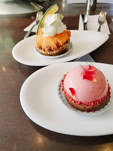 The cakes were so nice! Many of varieties, it's really hard to make a decision, I wanted to eat all of them. It was not only the beautiful look outside, but also had layers and details inside the cake. I was there on Sunday about 2pm, could still find most of the cakes available. It was a little crowded inside the shop, people were lining up to order. Tables were full, the outdoor seats were empty because of the hot weather. We wrote our name on the waiting list, ordered the cake before hand, then got the counter seats within...