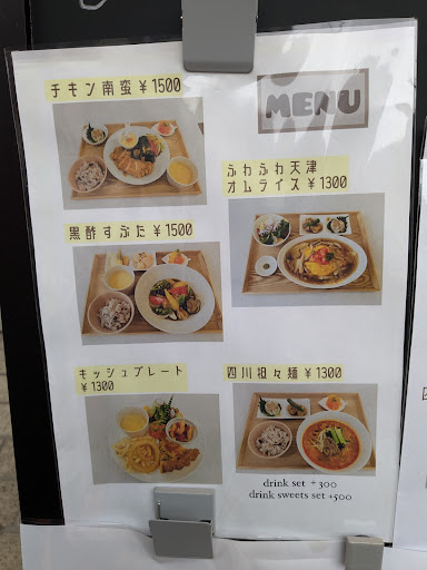 先にレジでメニューを伝えて前払いするシステムです💁外のランチメニューで前もって決めて入店するとスムーズです☝️😁 そんじょそこらのラーメン屋さん🍜よりも胡麻たっぷりで四川担々麺🍜めちゃめちゃ美味しかったです😋ひっさしぶりにスープ飲み干したいと思えちゃう担々麺に出会いました😍 にんじんシリシリ🥕も海老マヨ🍤も唐揚げ🍗もどれも絶品🥰ご飯がすすんですすんで🍚あっという間にペロリでした~🙏 奥さんが頼んだキッシュプレートも、とっても優しい味付けで奥さん絶賛してました👍また来ても間違いなくキッシュプレートにするそうです🍴 お冷のグラスも可愛くってテンション上がります✨ 店内はとってもおしゃれ造りで落ち着けますが 、そんな静かな店内を駆け回る子どもを全く注意せず放置してるファミリー🧑🤝🧑を視界に入れないように努力してもちっちゃくて狭い店内ですので、どうしたって視界に入って来ます😱イライラしないようにお気をつけ下さい😓 駐車場は全部で3台ありますが、非常識ファミリー🧑🤝�...