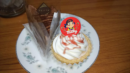 Read moreわが家から、1番近い不二家でほんのちょっとした手土産にはちょうど良いのでよく買うお店です。 明るい雰囲気ですし、ペコちゃんが、よくお洋服を着替えてきちんとしています。 今日は通り掛かるとマスクをしているので思わずUターンして覗きに行きました。可愛いマスクをしているので、このマスクを売っていたらもっと良いのにと思いましたね。子どもたちがワイワイとペコちゃんを撫でたりして、子どもたちのアイドルなのだと改めて思いました。 立ち寄って写真も撮ったから、ケーキを買いましたがケーキは甘ったるくてパサパサしていつも美味しくない。イチゴのショートケーキやらペコちゃんのほっぺ...