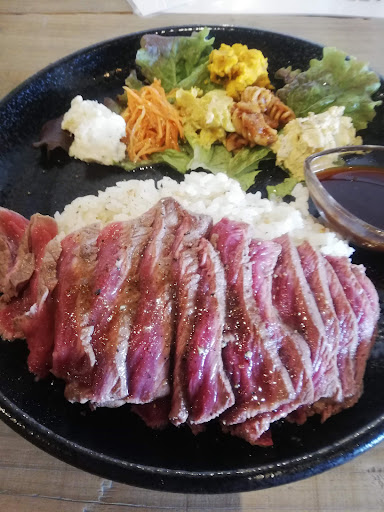 副菜が少しづつ何種類もあって全て美味しいです。 メインの牛ランプステーキもなかなかの量でこの値段で大丈夫?と心配になるくらいw