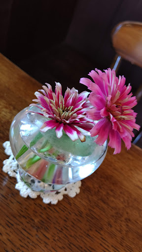 ガーデニングされた中庭を窓越しに眺めながらのモーニングタイム!!テーブルには“不在の友を思う”・“絆”etcの花言葉を持つ『百日草』が…栗の実の演出は何方のアイデアか!!まさにこれも“香せり”なんやろね(...
