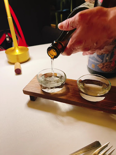 ペアリングのワイン🍷だけでは当然飲み足りなくなってしまった私は日本酒3種飲み比べセットを追加☺️ ・獺祭(純米大吟醸) ・白老(辛口特別純米酒) ・盛田(純米吟醸)無濾過
