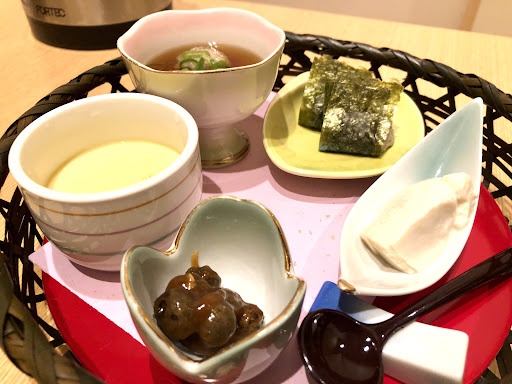 海苔で巻かれた自然薯のお刺身やお豆のようなむかごの天ぷらなど、珍しい料理が入っています。