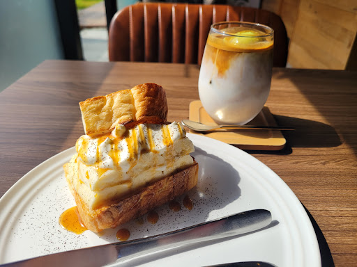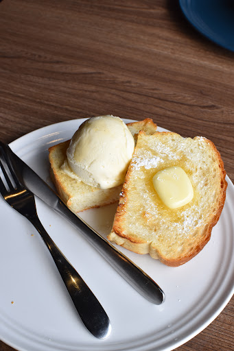表面サクッ、中はふわっ。 しみしみバターとバニラアイスの相性が最高で、 甘さ控えめなのも朝にぴったり。 すっきりアイスコーヒーと合わせれば、 完璧な朝の完成🌞
