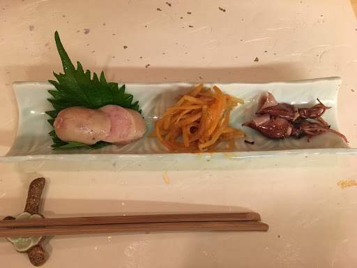 Read moreメニュー表がなく、お任せのみなのでとても敷居が高く感じましたが割と庶民的な価格で料理も美味しかったです。 自分が食べたいものがあれば2日前にお願いすると用意してくれるとの事なので、次回は事前に食べたいものをお願いして行きたいと思います。 今回食べた中で牡蠣の大きさに驚きましたし!もちろん味も間違いなし。 でも、個人的に天ぷらがめちゃくちゃ好きでした。 山菜、オクラ、レンコンと最後に食べたエビの上に椎茸を乗ってけ揚げたものがたまらなかったです。 大将も話しやすい人...
