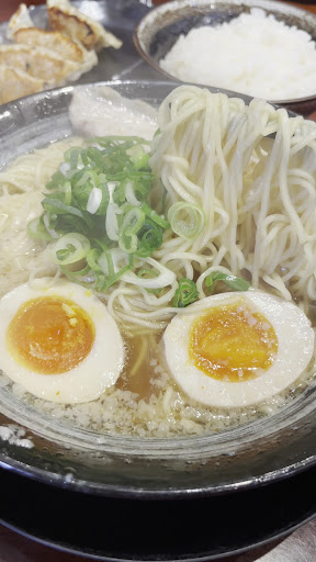 Read moreGoogleの評価が高いお店だったので行ってみました。 店の前に3台分ほどの駐車スペースもあり、30メートルほど離れた場所にも5〜6台の駐車スペースがあるので、車でも安心して来ることができます。 店内はアクリルの間仕切り等もある喫茶店のような感じのキレイなお店です。 店員さんも感じよく接客していただけるので、お子様連れや女性だけでも安心して入れるお店だと思います。 今回は餃子ランチを頂きました。 お味はというと、ほんのり一味のきいた「サッパリ系の尾道ラーメン」という感じでした。 スープは背脂はあるものの、しつこくなく、麺も細麺で、サラサラ食べれてしまう程なので「量が足りないかな?」と思いましたが、餃子やライスの量がしっかりしているので、かなり満腹になると思います。 中でもメンマがかなり美味しく、長くて柔らかく、かつ出汁が染み込んでいるのでもっと食べたいな!と、感じるほどでした。 チャーシューも味が染み込んでおり、プリプリな食感がとても美味しく感じました。 餃子もサッパリ系かと思いましたが、こちらは普通の大きさながらも肉感たっぷりの旨味ある餃子でした。 ライスはすこし柔らかめを器にしっかり盛り付けた!という感じなので、見た目以上に量を感じました。 常連さんが多そうなお店でしたが、雰囲気は非常に良いお店なので、気軽に入店できる感じの良いお店でした。 また来ようと思います。 個人的にはしっかり味の尾道ラーメンが好みなので☆4...